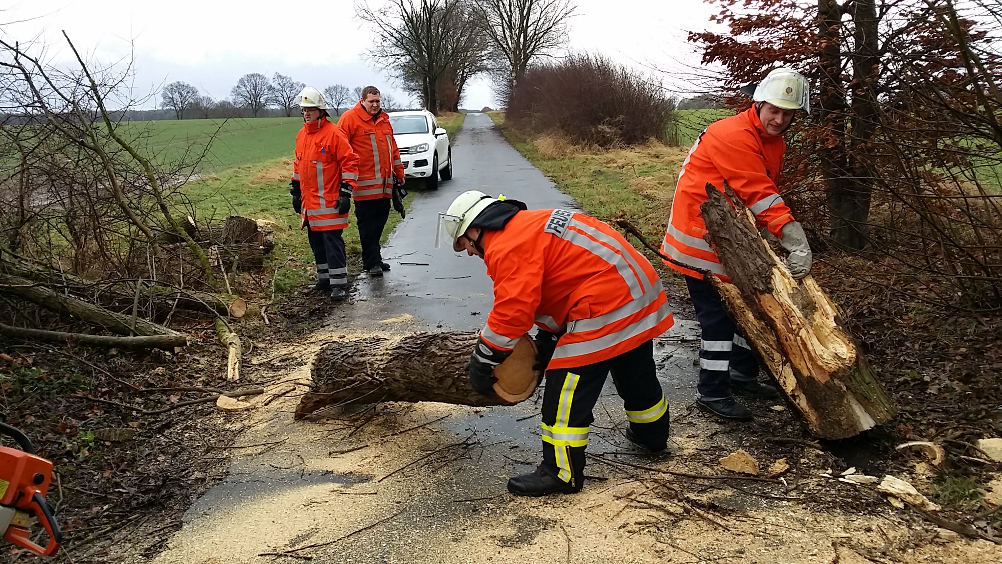 Der Baum wurde zerkleinert und die Straße gesäubert.