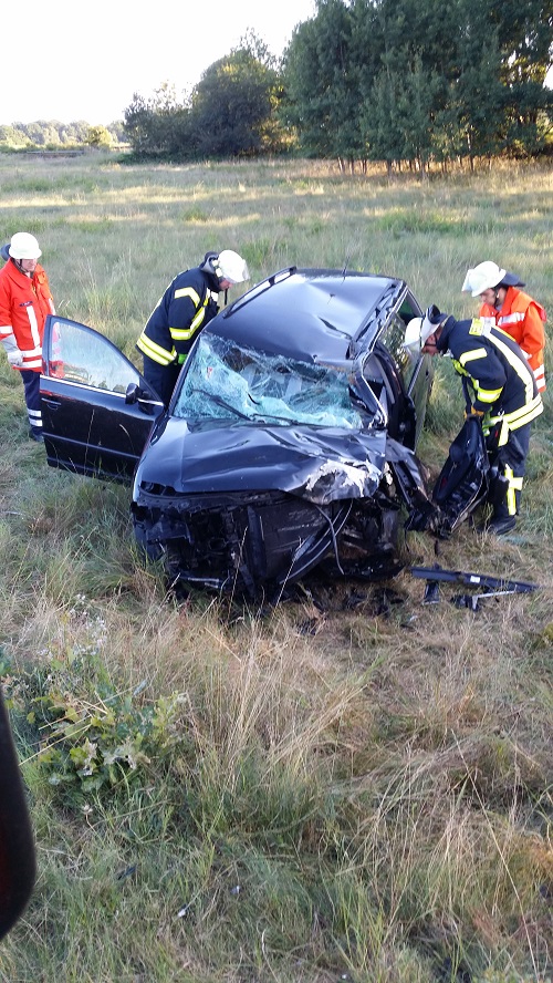 Verkehrsunfall mit eingeklemmter Person, Pkw gegen Baum